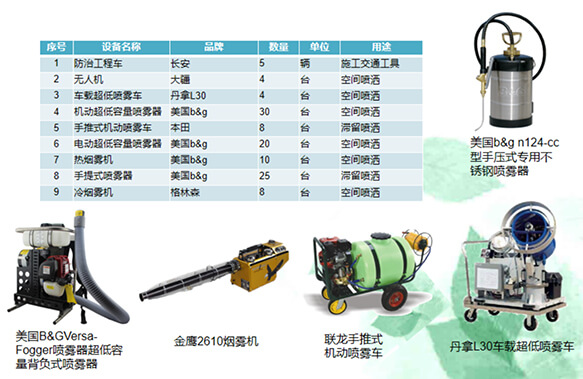 具有行業(yè)先進(jìn)的設(shè)備,美國(guó)B&GVersa-Fogger噴霧器超低容量背負(fù)式噴霧器30臺(tái)、電動(dòng)超低容量噴霧器20臺(tái)、熱煙霧機(jī)10臺(tái)、手提式噴霧器25臺(tái)......